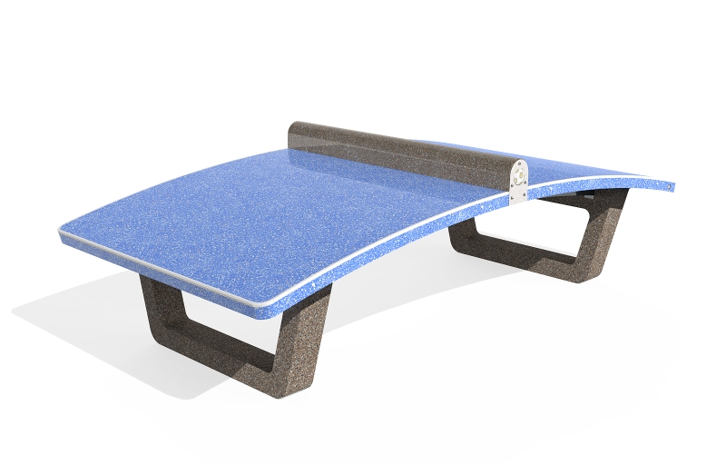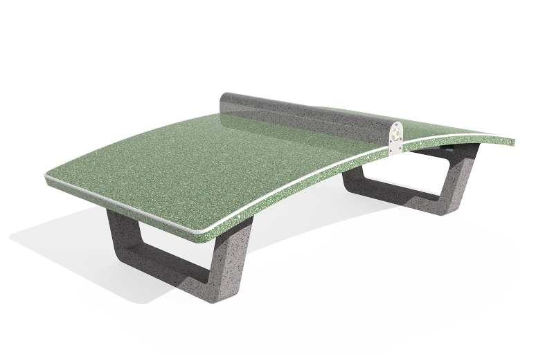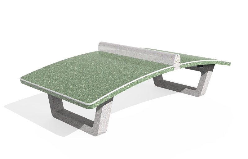 Anche questo modello sfrutta la nostra lunga esperienza produttiva di arredi da esterno. Il materiale utilizzato è calcestruzzo ad alte prestazioni con resistenza C60/75 – la classe di riferimento più elevata per questa tipologia di materiale. La consueta cura è dedicata anche alle finiture. Il tavolo di gioco curvo, che può essere fornito in colore verde o in colore blu, ha una superficie levigata, come l’elemento tondeggiante che svolge le funzioni della rete. Le gambe di supporto hanno invece finitura con aggregato in rilievo, permettendo di conferire allo strato superficiale una consistenza materica e testurizzata. Perché va bene essere duri come il Teqball, ma anche l’occhio vuole la sua parte!