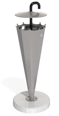 L’ombrello posacenere poggia su una base circolare prodotta in calcestruzzo ad alte prestazioni, con finitura superficiale levigata. Il trattamento con vernici poliuretaniche trasparenti aumenta le sue proprietà idrofobiche e rende la base ancora più refrattaria all’assorbimento di umidità. Contribuisce inoltre ad evitare il deposito di sporcizia e residui. Le parti in calcestruzzo sono disponibile nei consueti quattro colori standard.