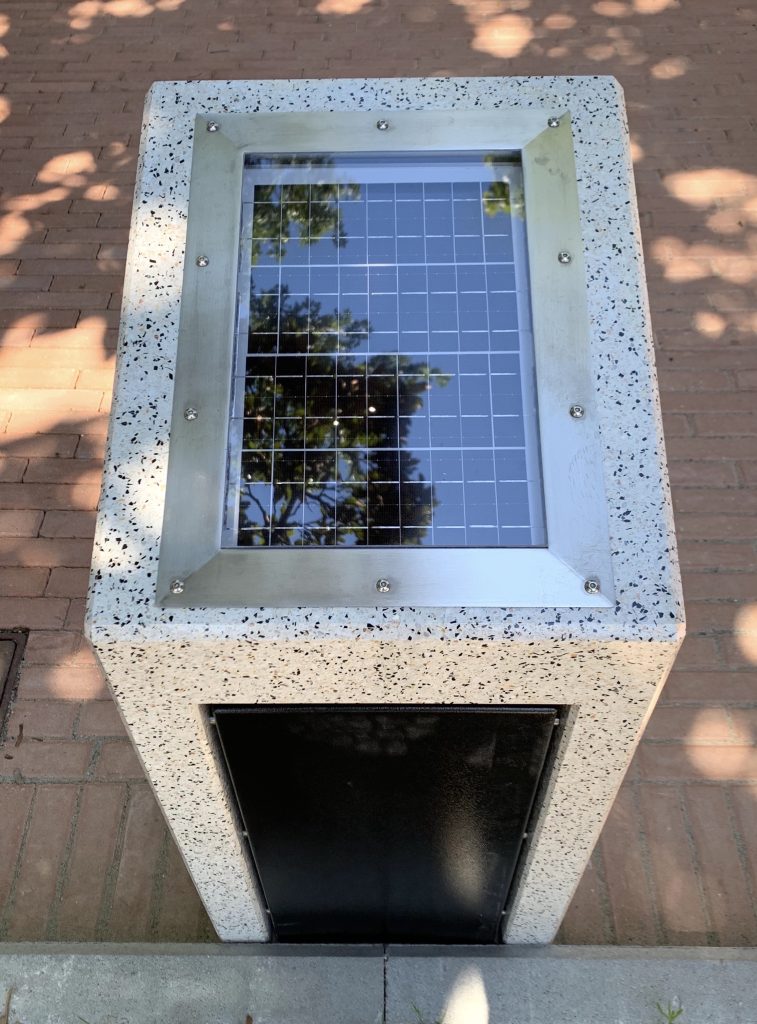 Il pannello solare di nuova generazione, integrato nella parte superiore della struttura, consente di caricare le batterie anche in condizioni di scarsa luce solare. Le batterie forniscono energia per oltre un mese di funzionamento autonomo, anche senza ulteriore ricarica dal pannello solare. Quest’ultimo è protetto da un rivestimento antiurto, che lo ripara da danni meccanici e agenti atmosferici.